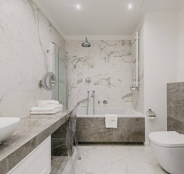 Do wyboru łazienki z prysznicem lub wanną. Każdy apartament wyposażony jest także w pralkę.