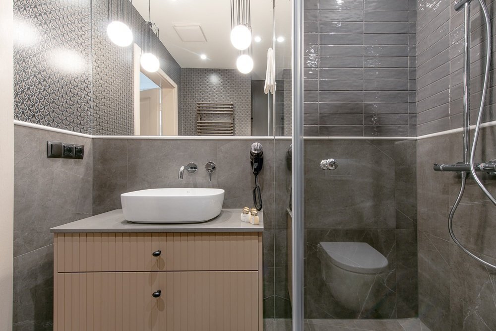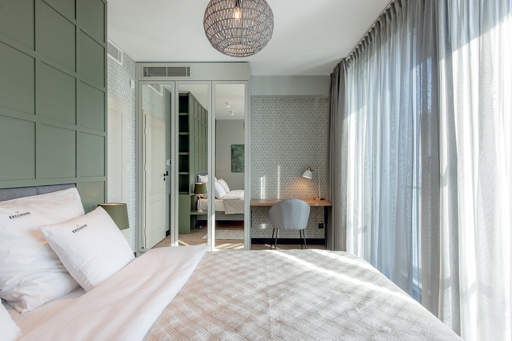 Przykładowy apartament pokazuje, jak budujemy nasze standardy. Wnętrza w zależności od obiektu różnią się stylem i wykończeniem, ale zawsze trzymamy się tych samych praktycznych zasad, które w trakcie pobytu zapewnią Ci maksimum komfortu.